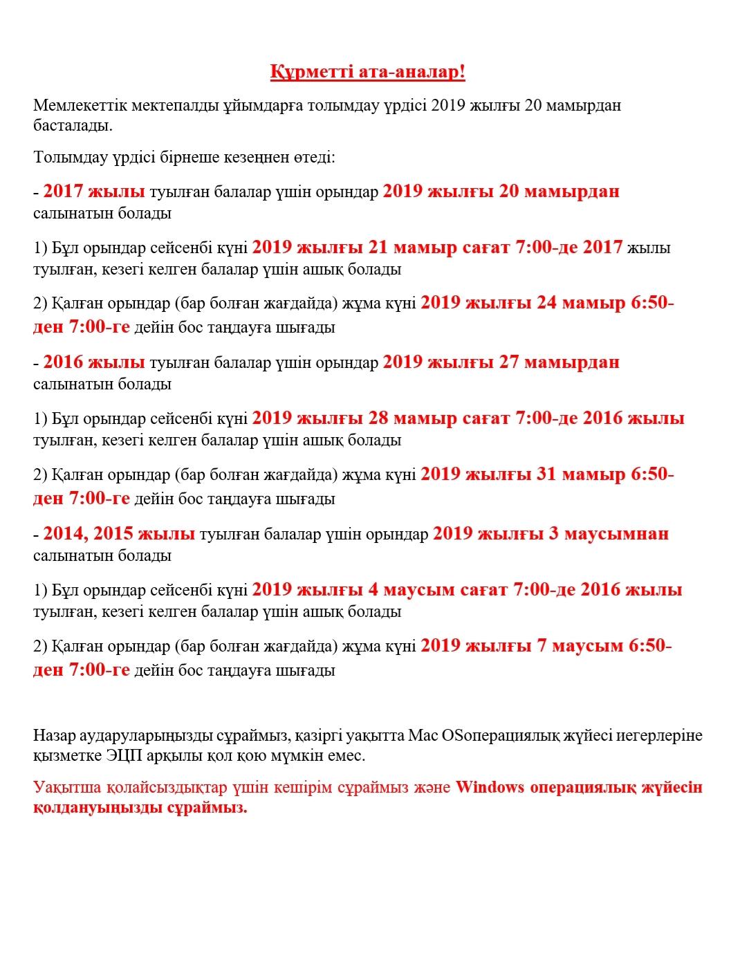 Назар аударуларыңызды сұраймыз, қазіргі уақытта Мас OS операциялық жүйесі иегерлеріне қызметке ЭЦП арқылы қол қою мүмкін емес. Уақытша қолайсыздықтар үшін кешірім сұраймыз және Windovs операциялық жүйесін қолдауыңызды сұраймыз.