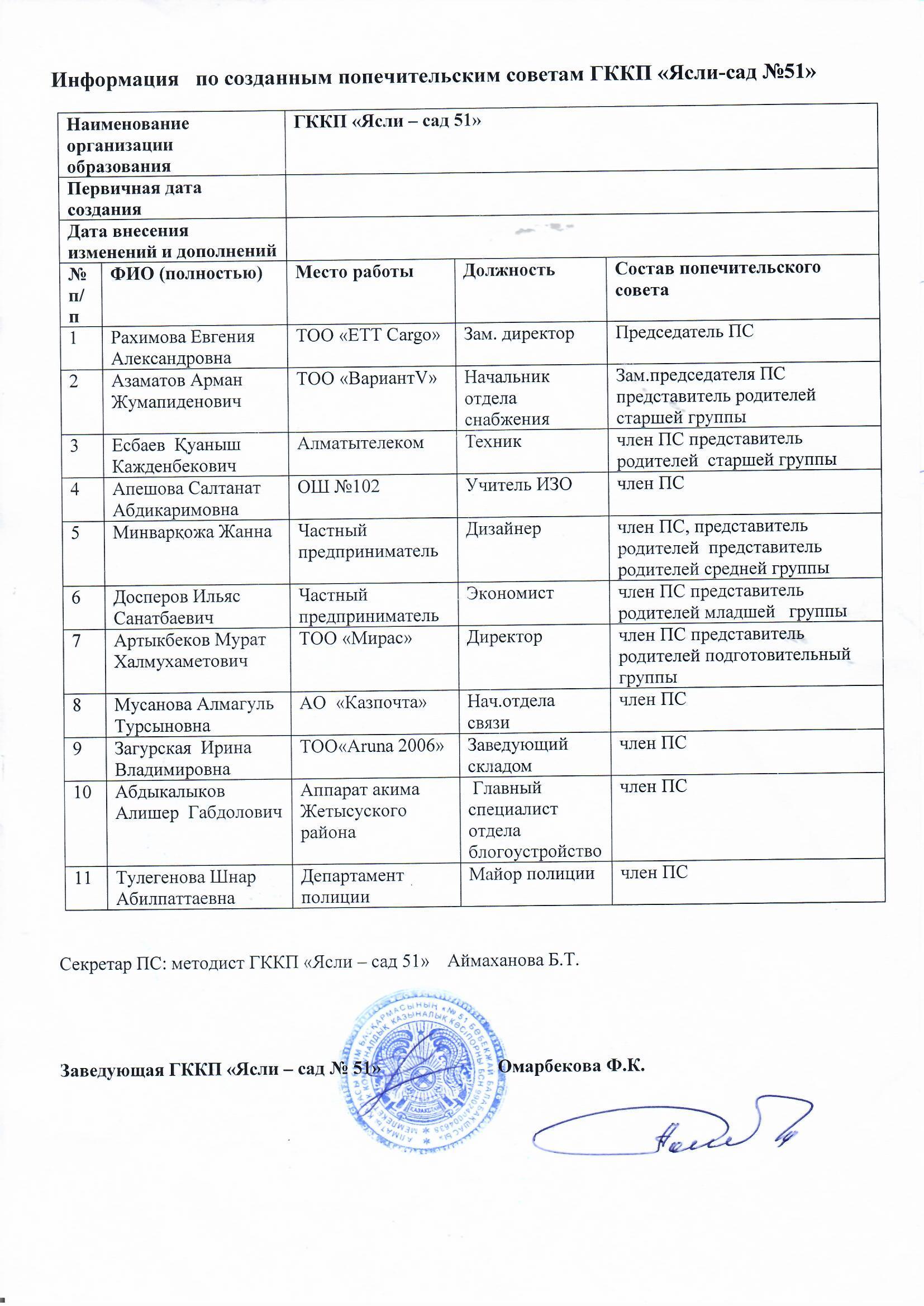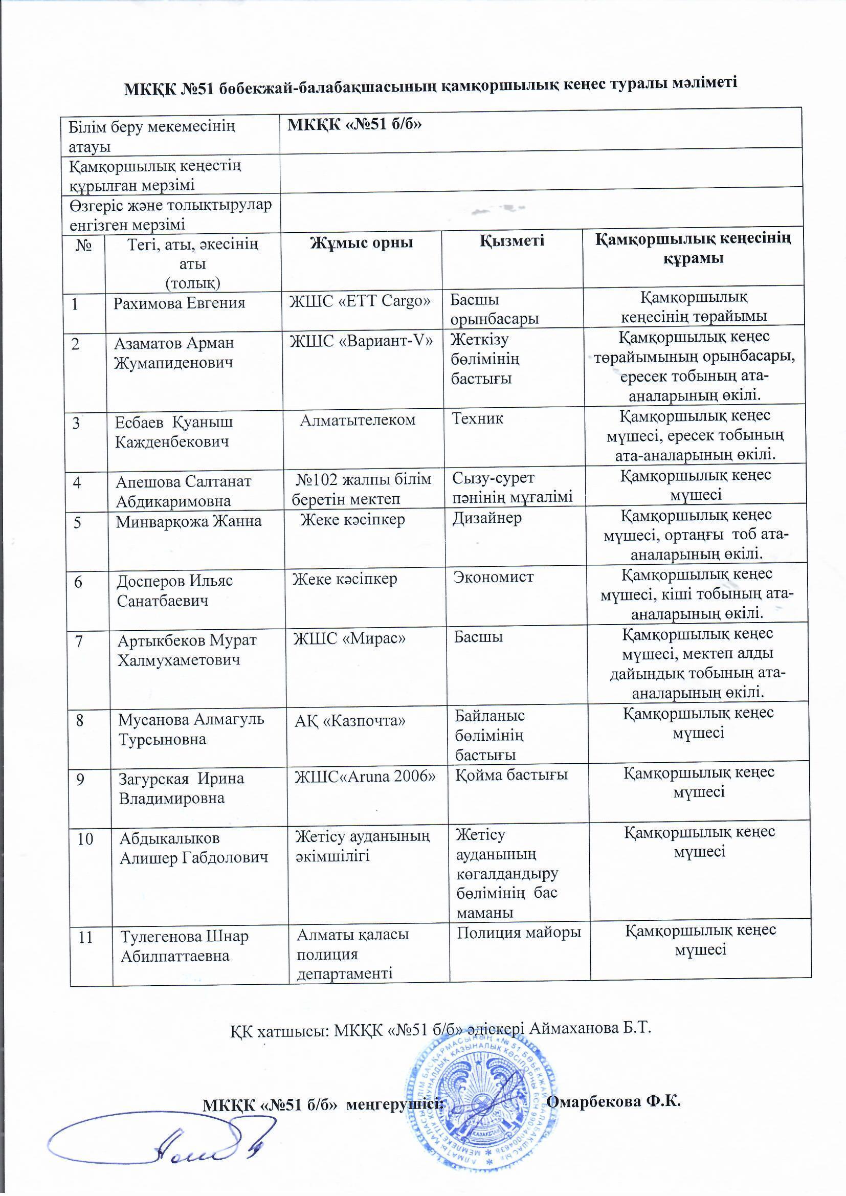 Попечительский совет » МКҚК"№51 бөбекжай-балабақшасы"