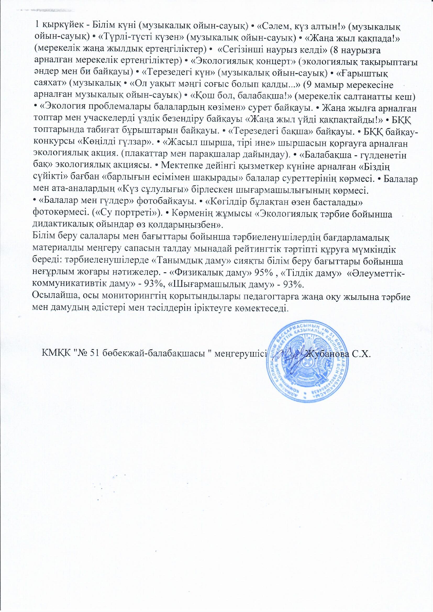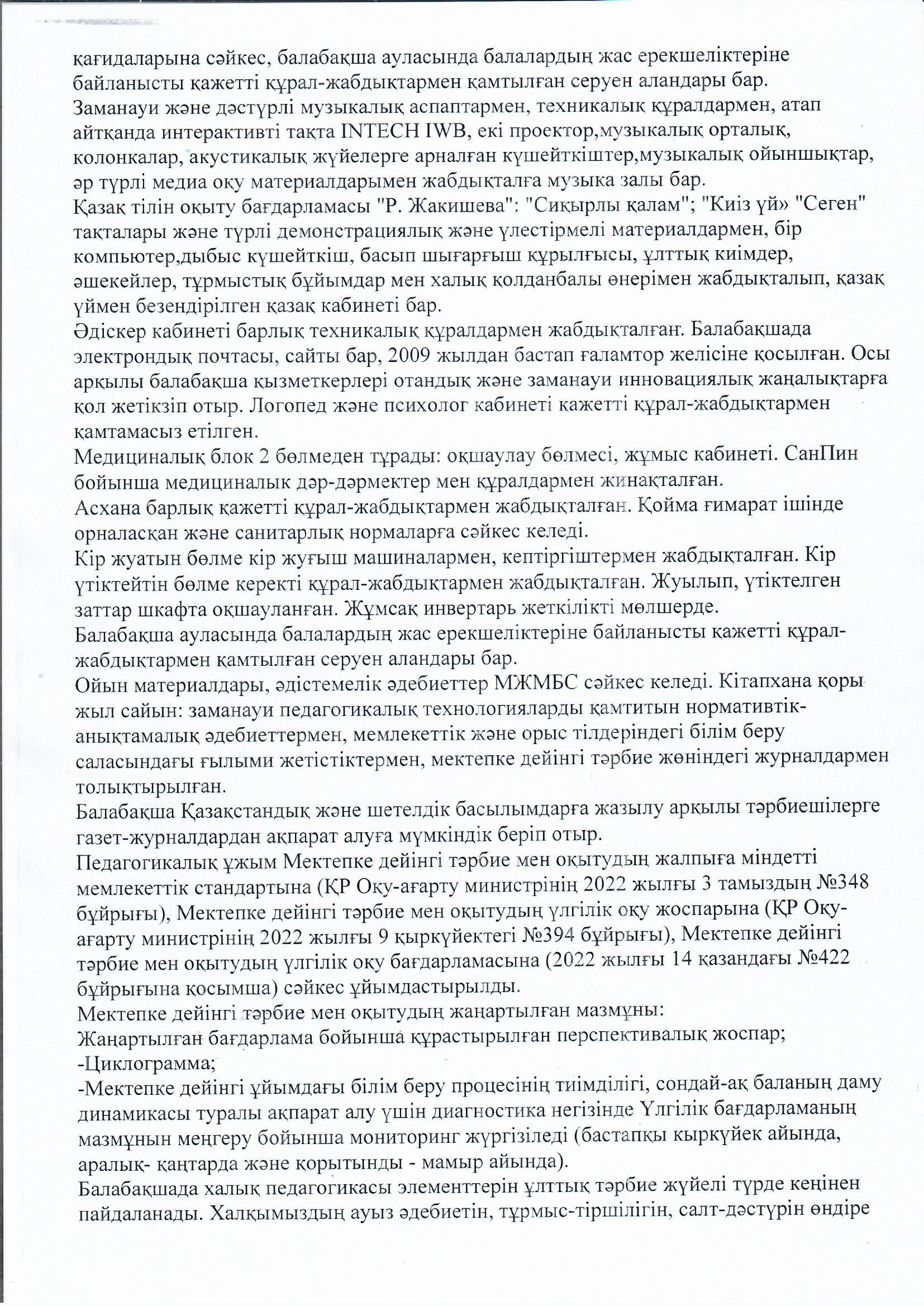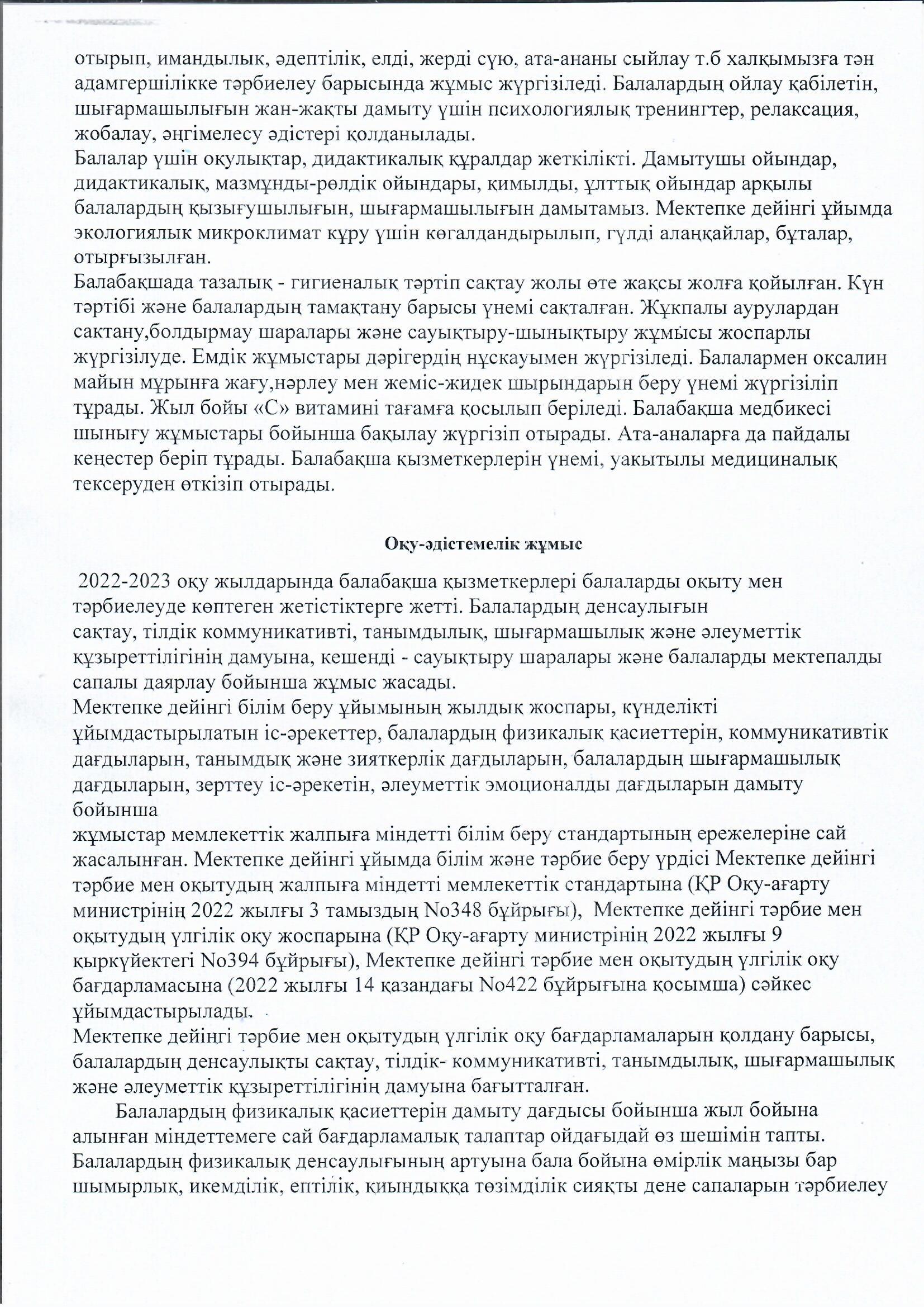 2022-2023 оқу жылының қорытындысы бойынша өзіндік бағалау » МКҚК"№51 бөбекжай-балабақшасы"