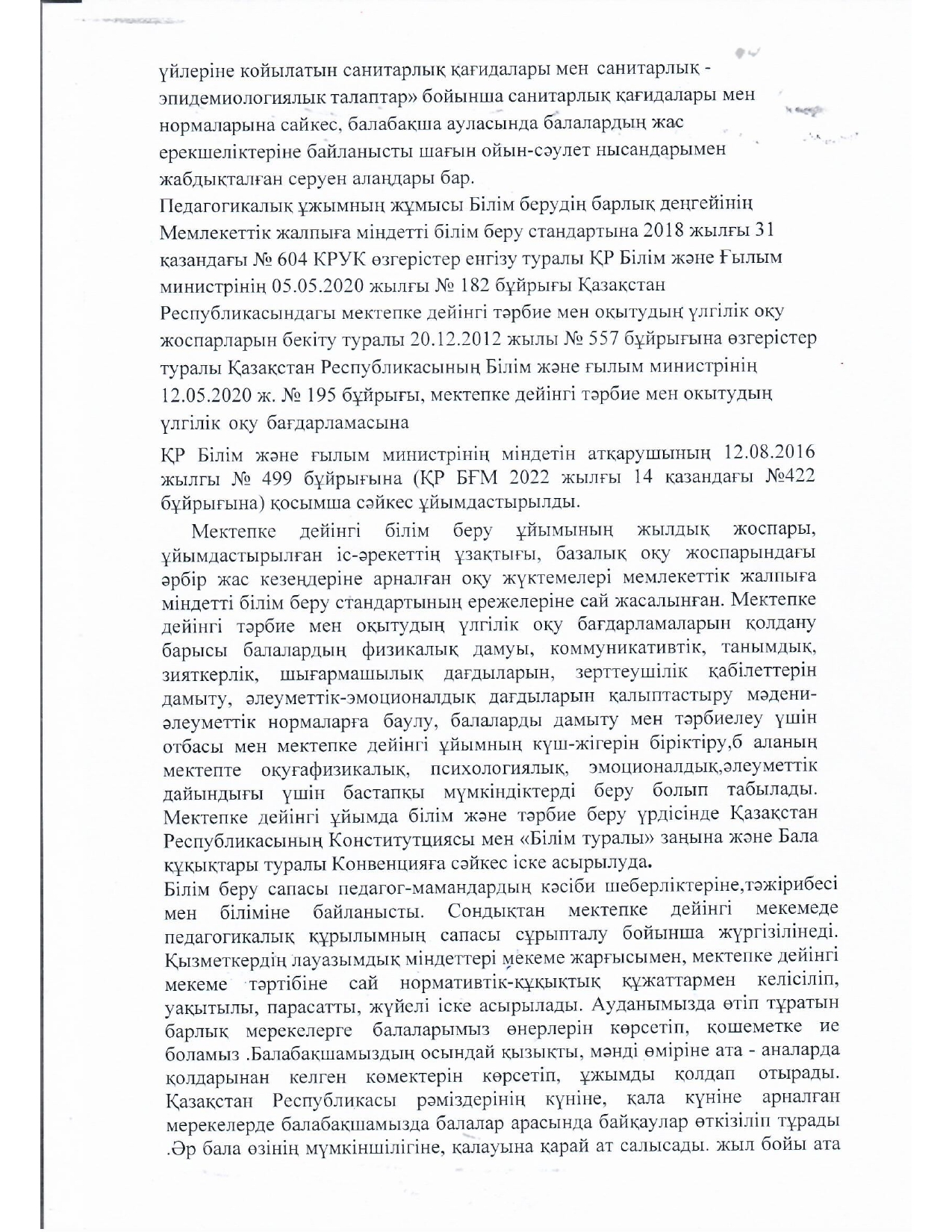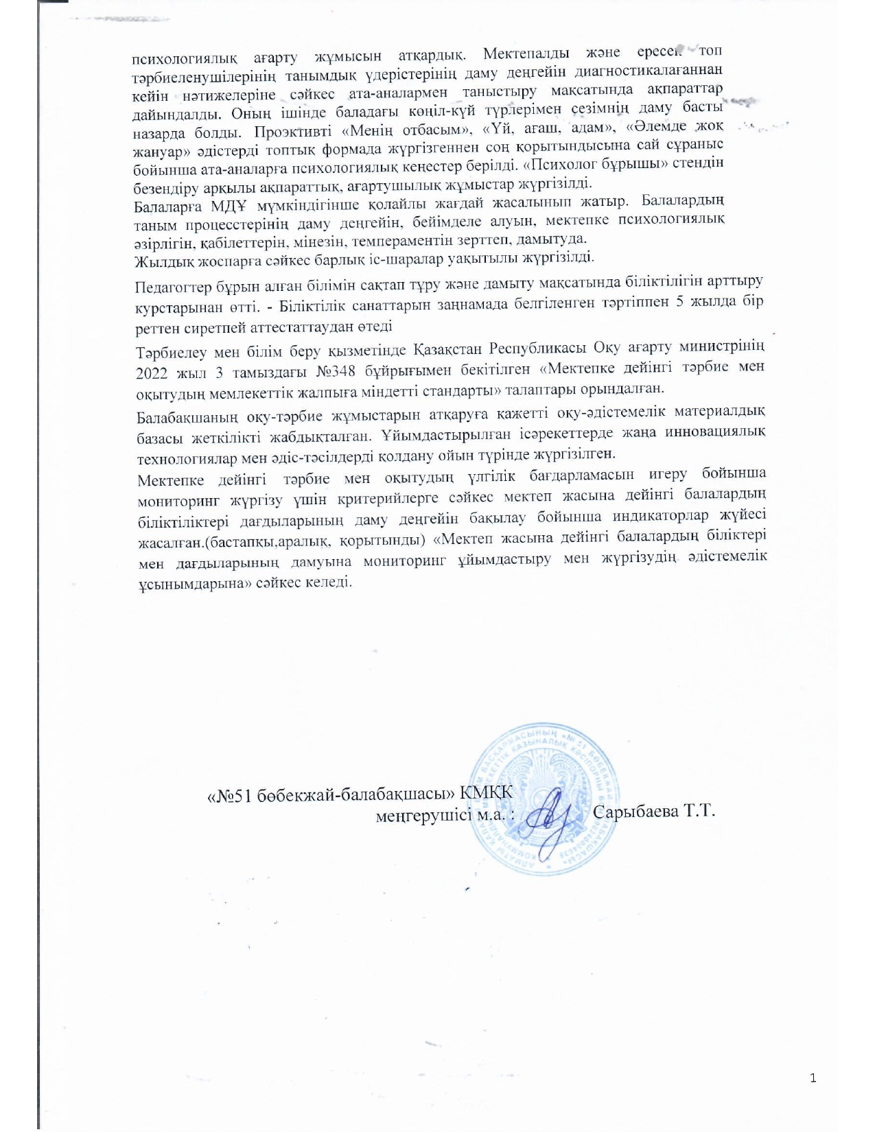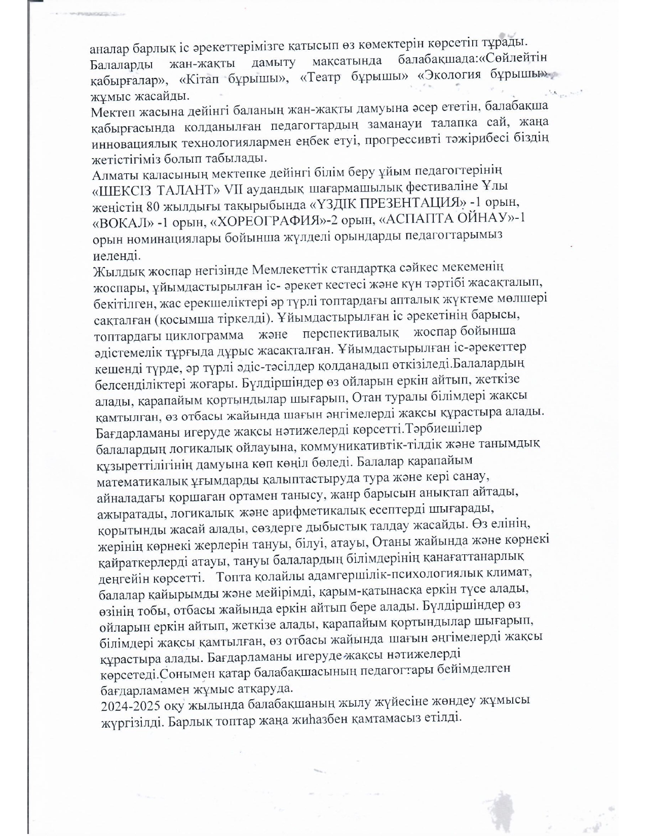2024-2025 оқу жылына өзіндік бағалау. » МКҚК"№51 бөбекжай-балабақшасы"