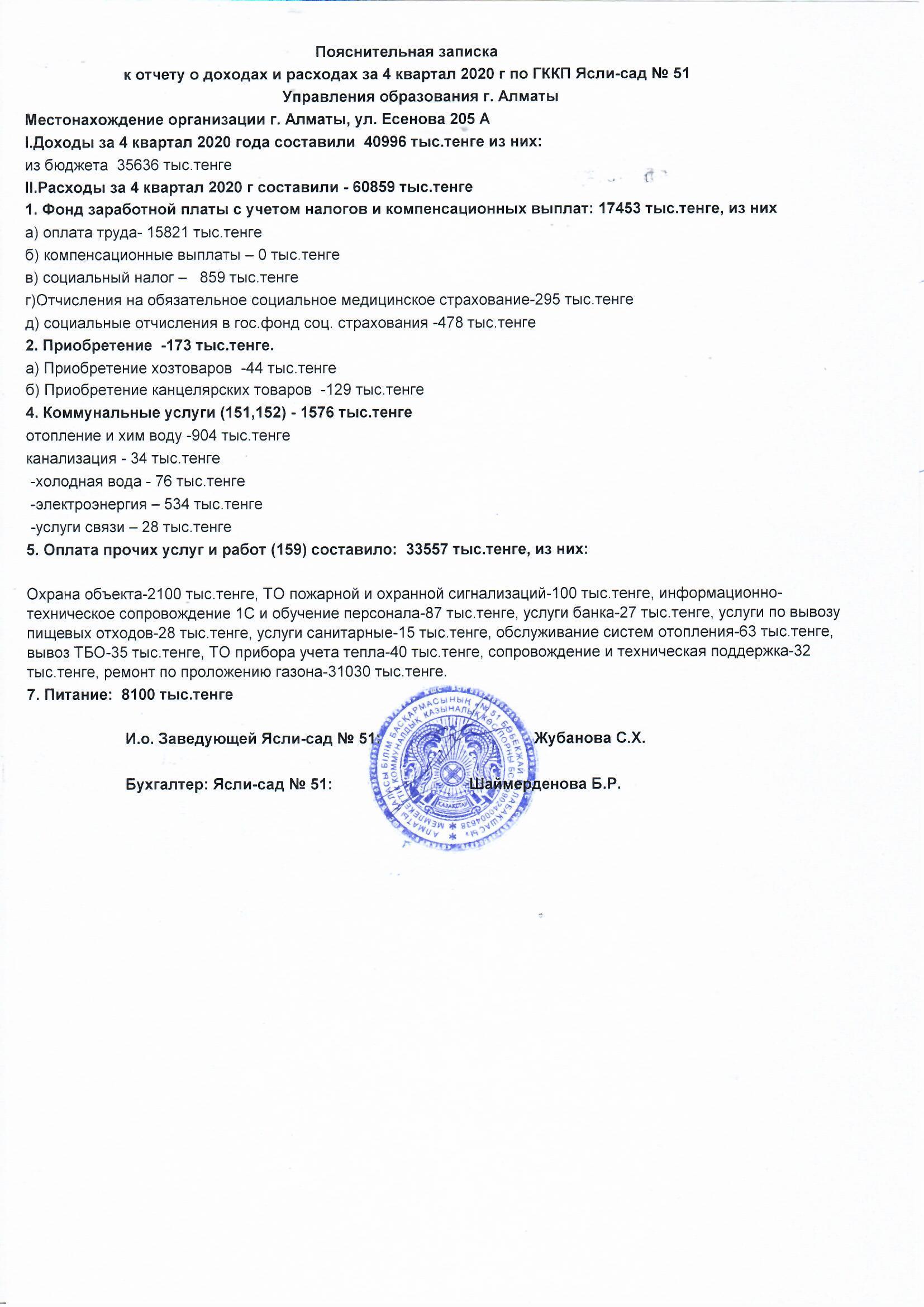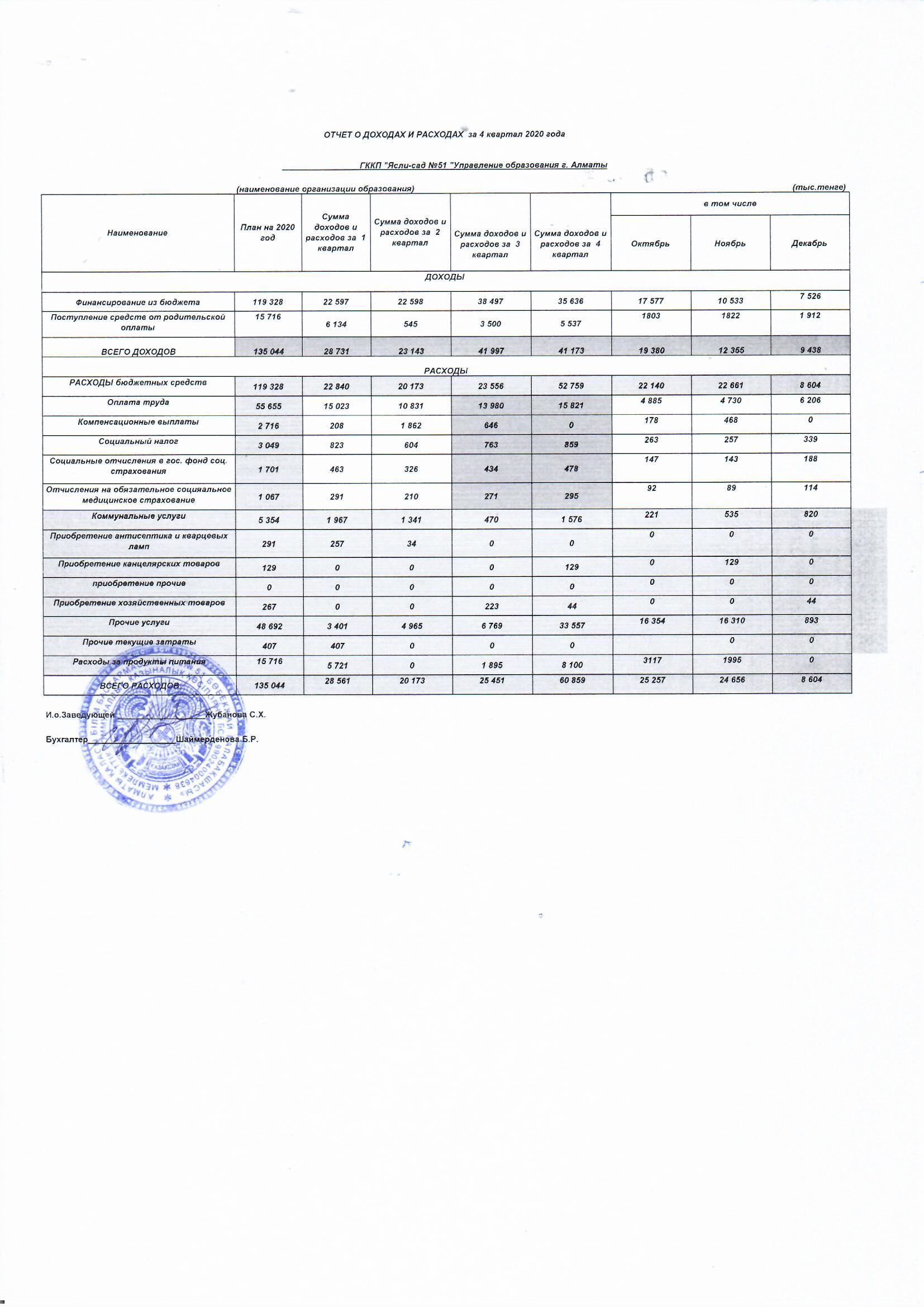 4 квартал о доходах и расходах » МКҚК"№51 бөбекжай-балабақшасы"