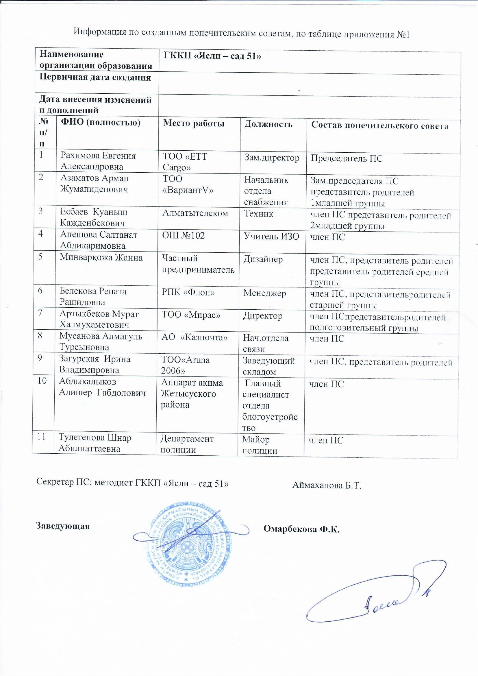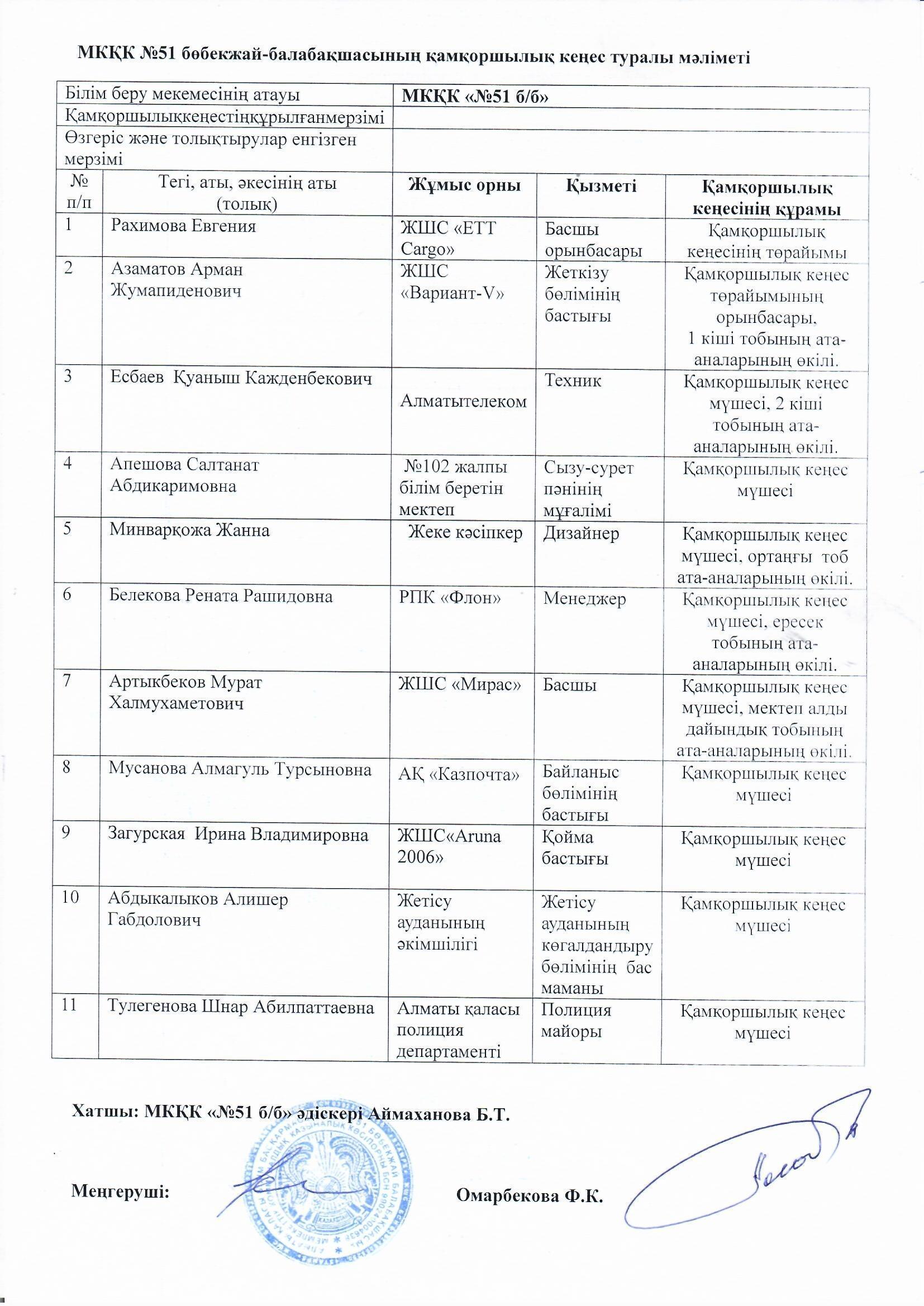 Протокол заседания Попечительского ГККП "ясли-сад №51" » МКҚК"№51 бөбекжай-балабақшасы"