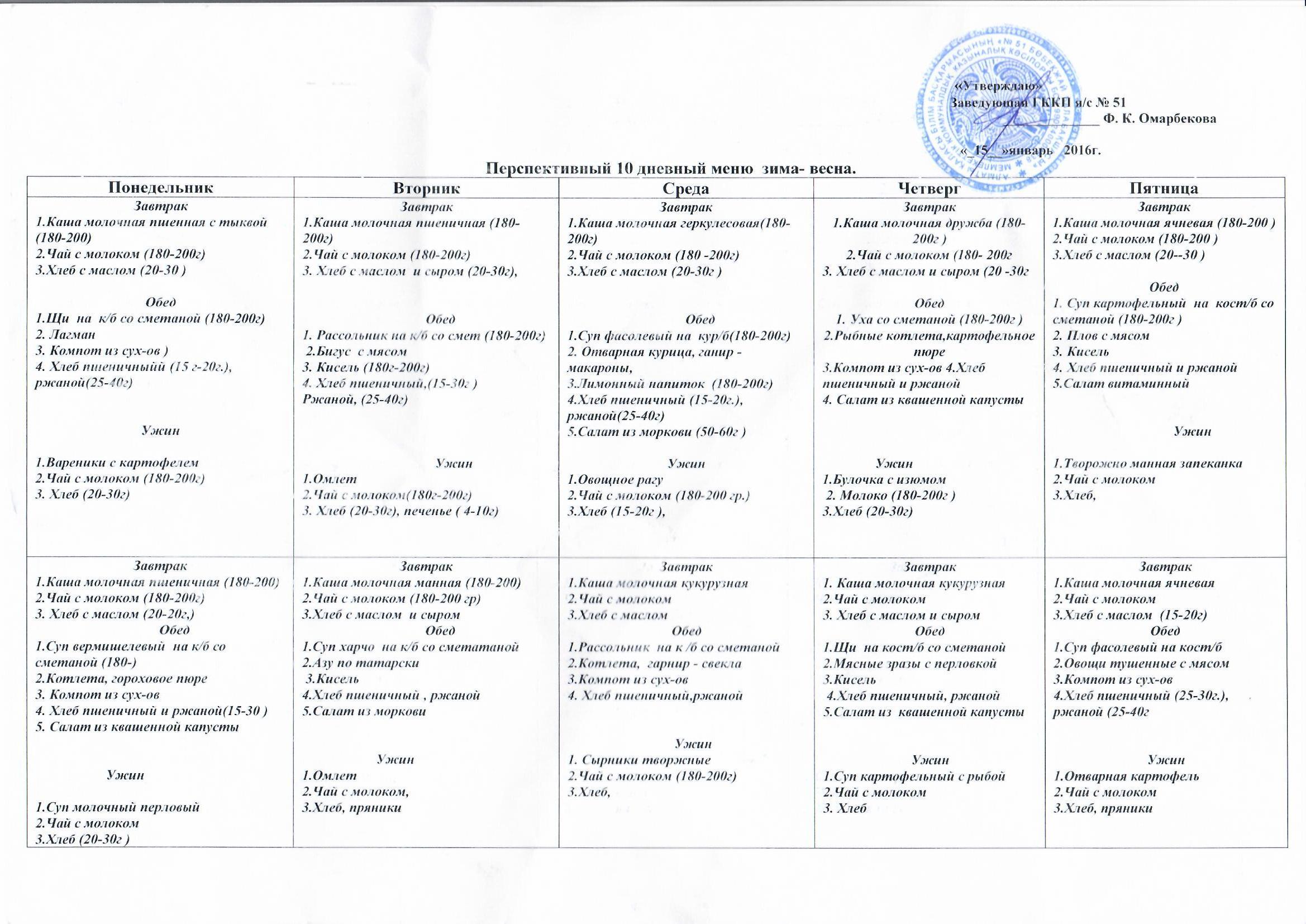 Перспективное 10 дневное меню зима-весна 2016 » МКҚК"№51 бөбекжай-балабақшасы"