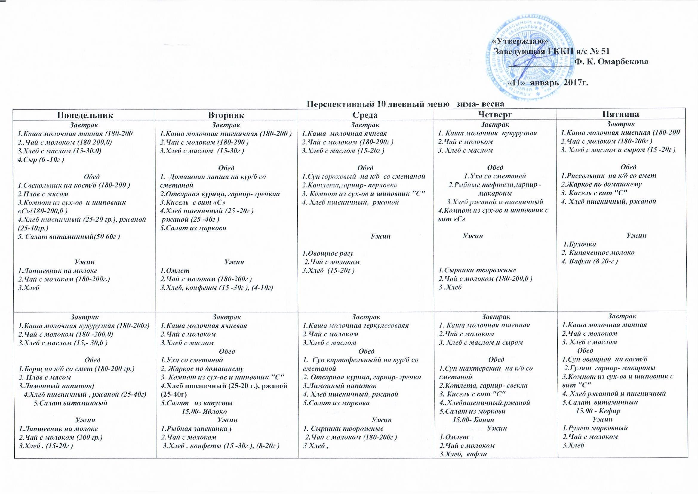 Перспективное 10 дневное меню зима-весна 2017 » МКҚК"№51 бөбекжай-балабақшасы"