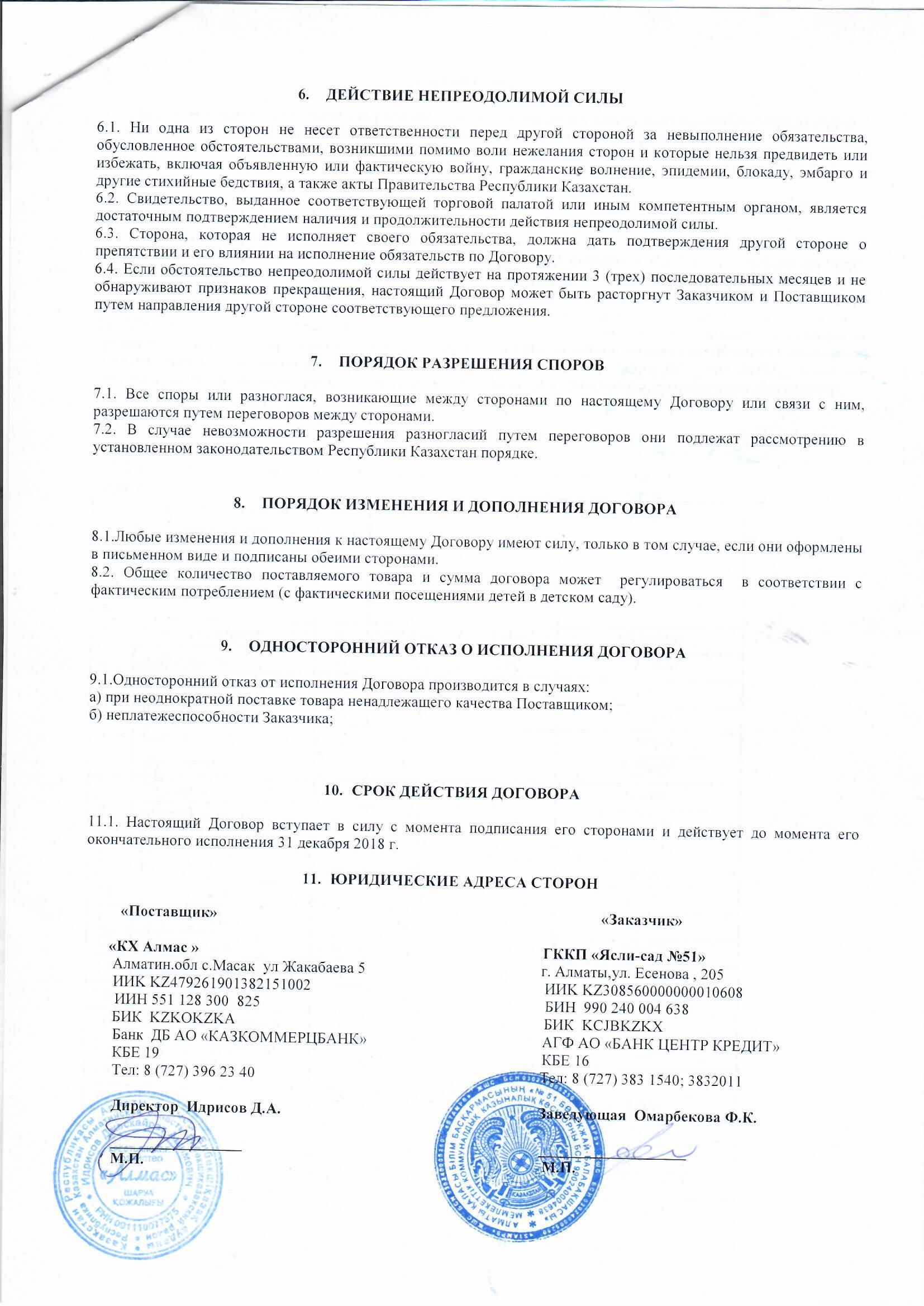 Договор питания КХ "Алмас" за 2018 » МКҚК"№51 бөбекжай-балабақшасы"