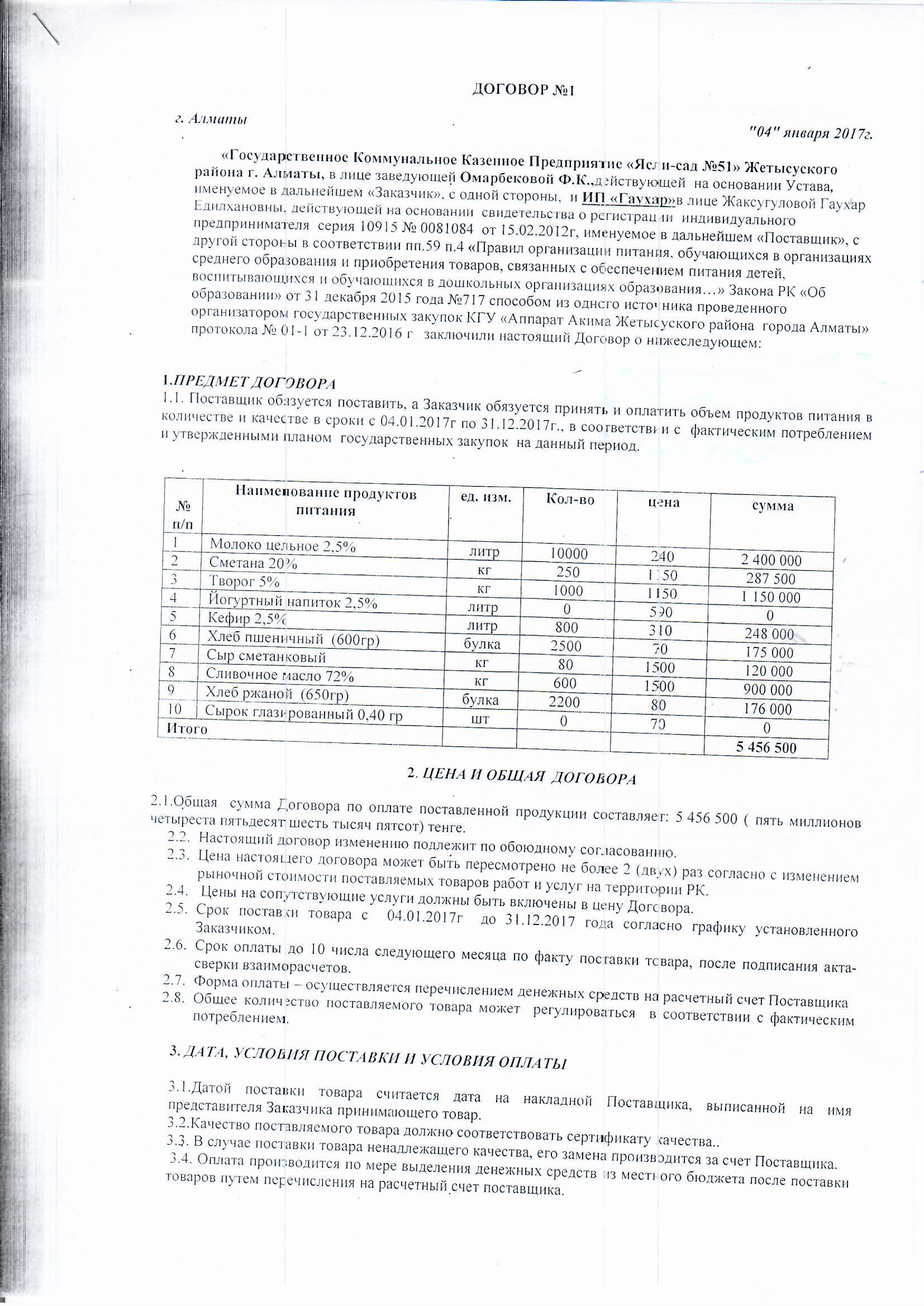 Договор питания ИП "ГАУХАР" за 2018 » МКҚК"№51 бөбекжай-балабақшасы"