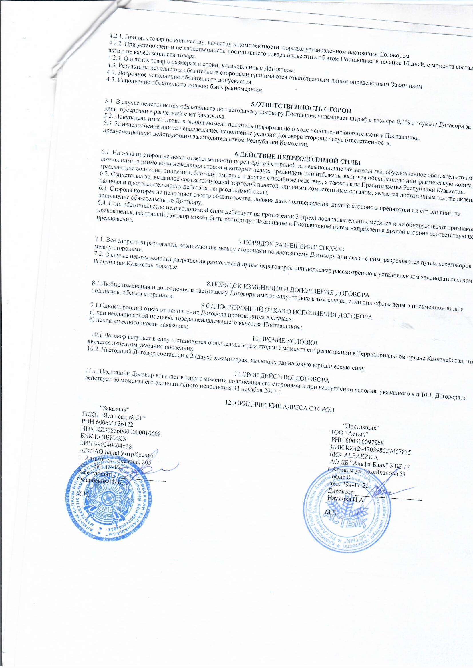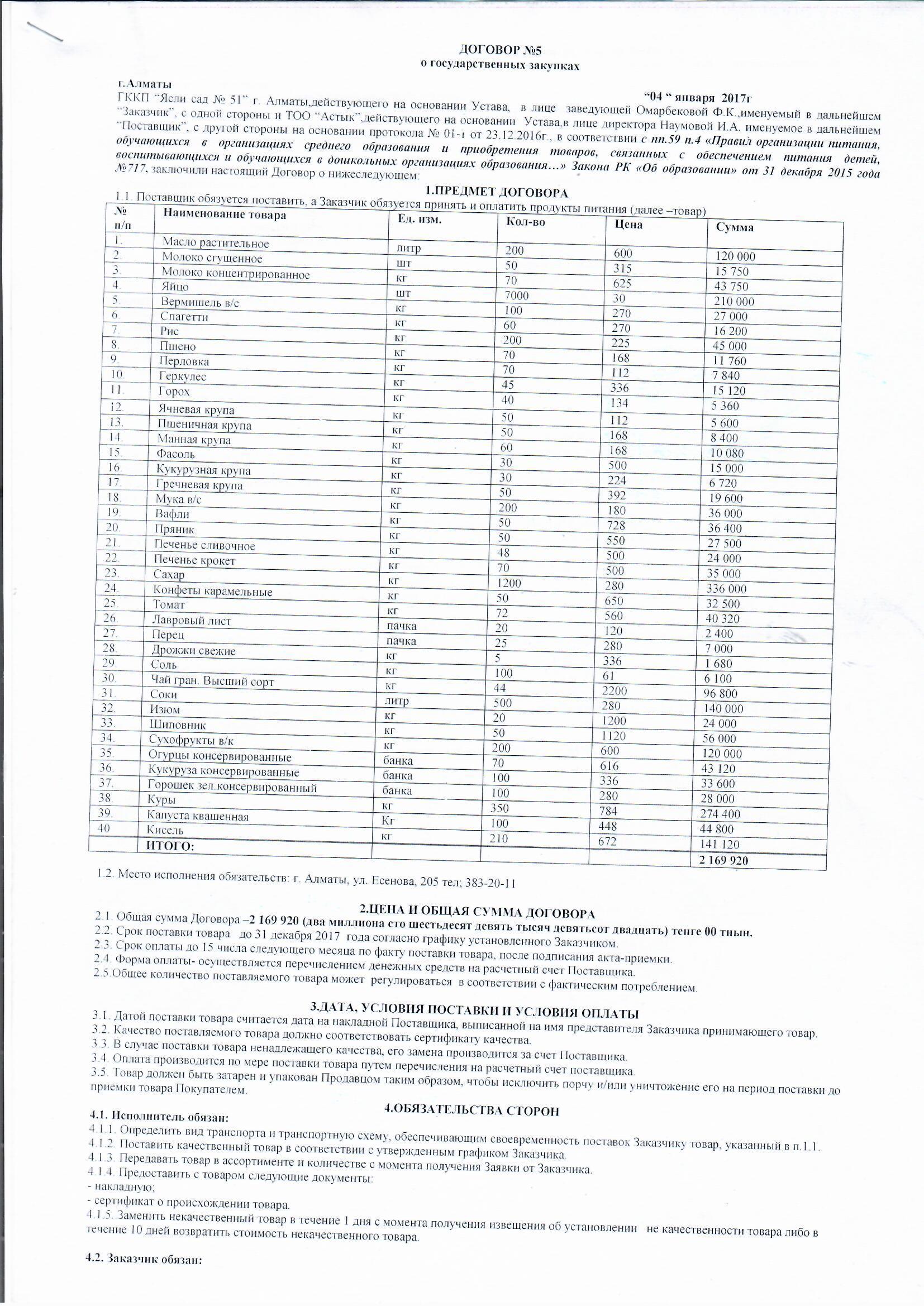 Договор питания ТОО "АСТЫК" за 2017 » МКҚК"№51 бөбекжай-балабақшасы"